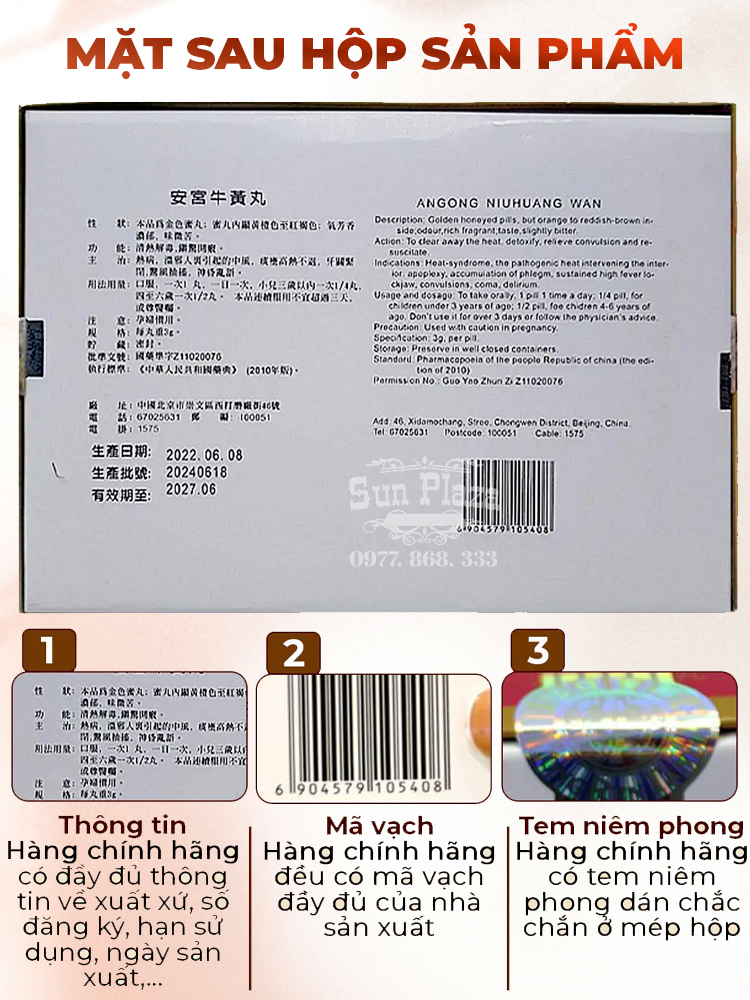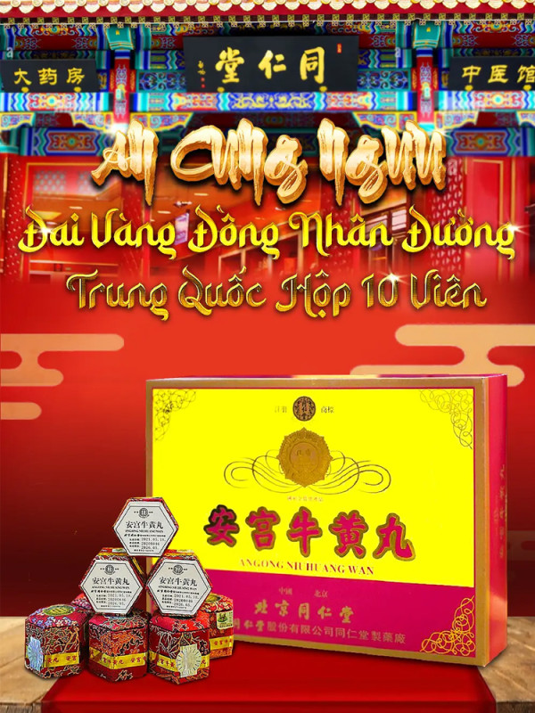 An Cung Ngưu Đai Vàng Đồng Nhân Đường Trung Quốc Hộp 10 Viên