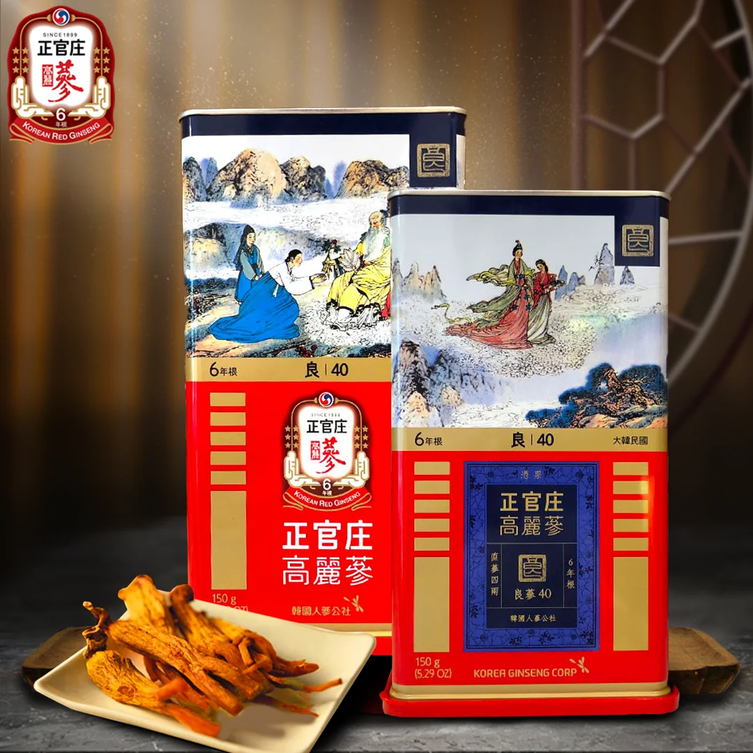 Hồng Sâm Củ Khô Chính Phủ KGC Hộp Thiếc 300g Số 40 (24 Củ)