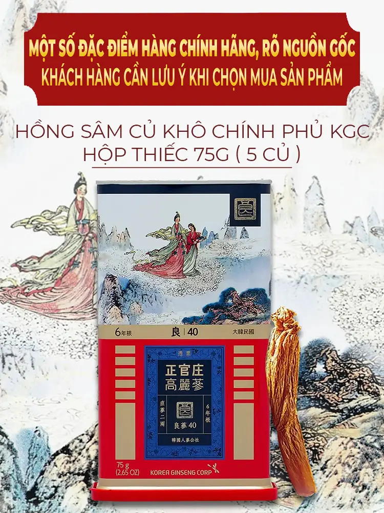 Hồng Sâm Củ Khô Chính Phủ KGC Hộp Thiếc 75g ( 5 Củ ) Số 30 quantity