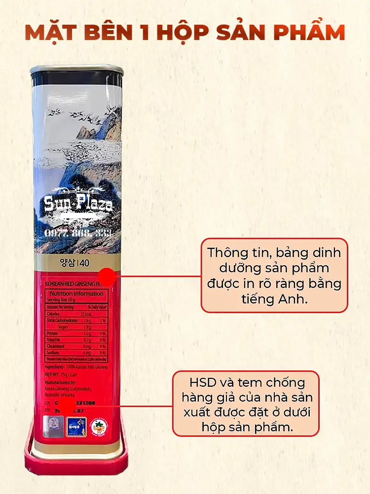 Hồng Sâm Củ Khô Chính Phủ KGC Hộp Thiếc 150g Số 40 ( 12 Củ )