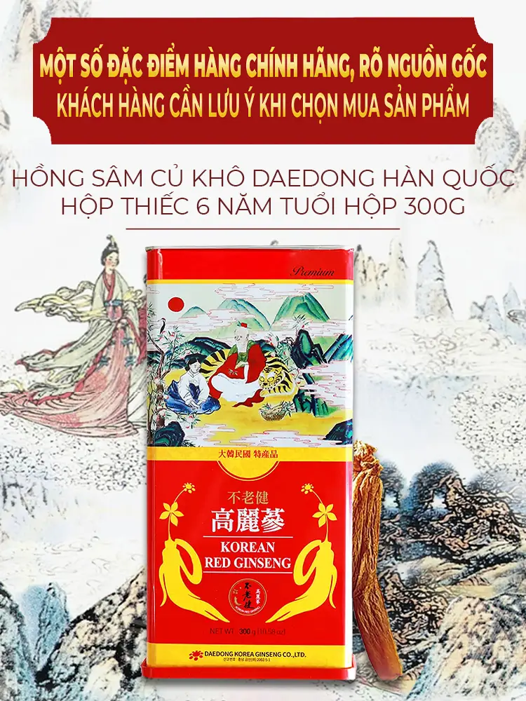 Hồng Sâm Củ Khô Daedong Hàn Quốc Hộp Thiếc 6 Năm Tuổi Hộp 300g