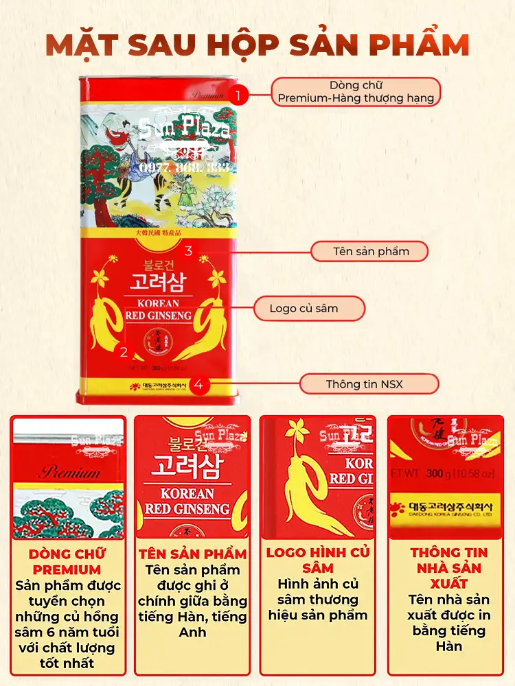Hồng Sâm Củ Khô Daedong Hàn Quốc Hộp Thiếc 6 Năm Tuổi Hộp 300g quantity