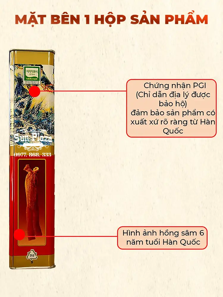 Hồng Sâm Củ Khô Wooshin Hàn Quốc Hộp Thiếc 6 Năm Tuổi Hộp 300g (15 củ )