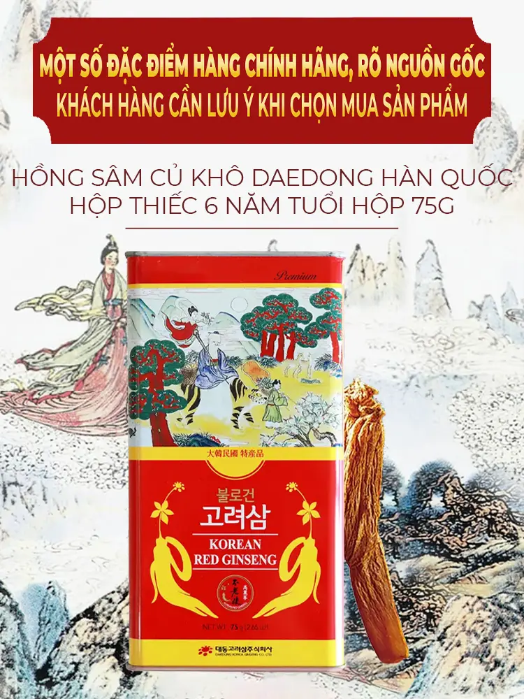 Hồng Sâm Củ Khô Daedong Hàn Quốc Hộp Thiếc 6 Năm Tuổi Hộp 75g
