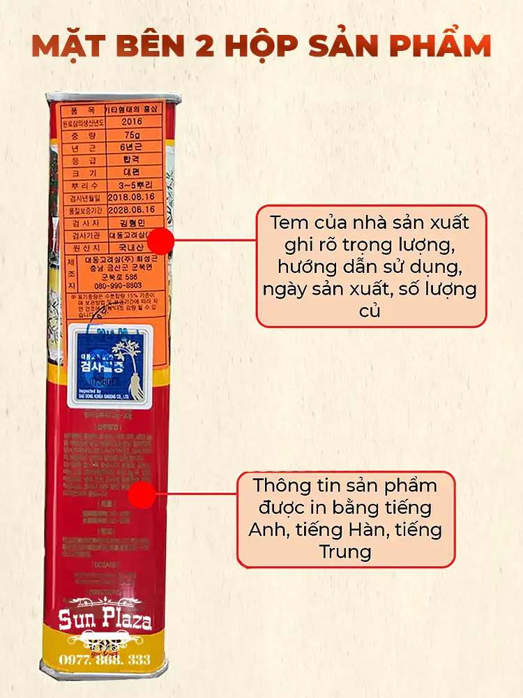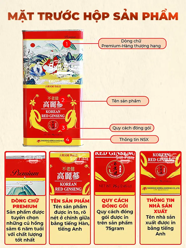 Hồng Sâm Củ Khô Daedong Hàn Quốc Hộp Thiếc 6 Năm Tuổi Hộp 75g quantity